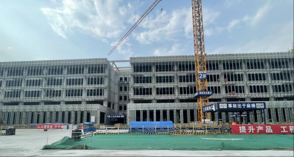 五层:内墙砂浆抹灰完成100%;外墙工程完成40%;