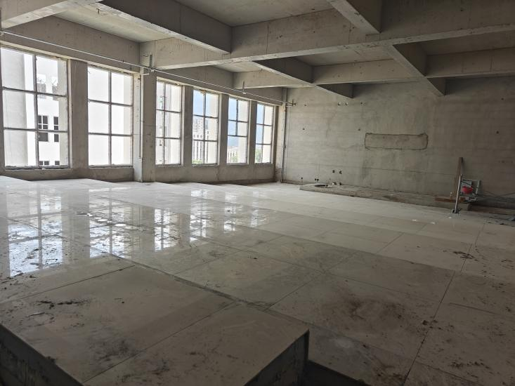 五层:二次结构完成100%,内墙砂浆抹灰完成98%;