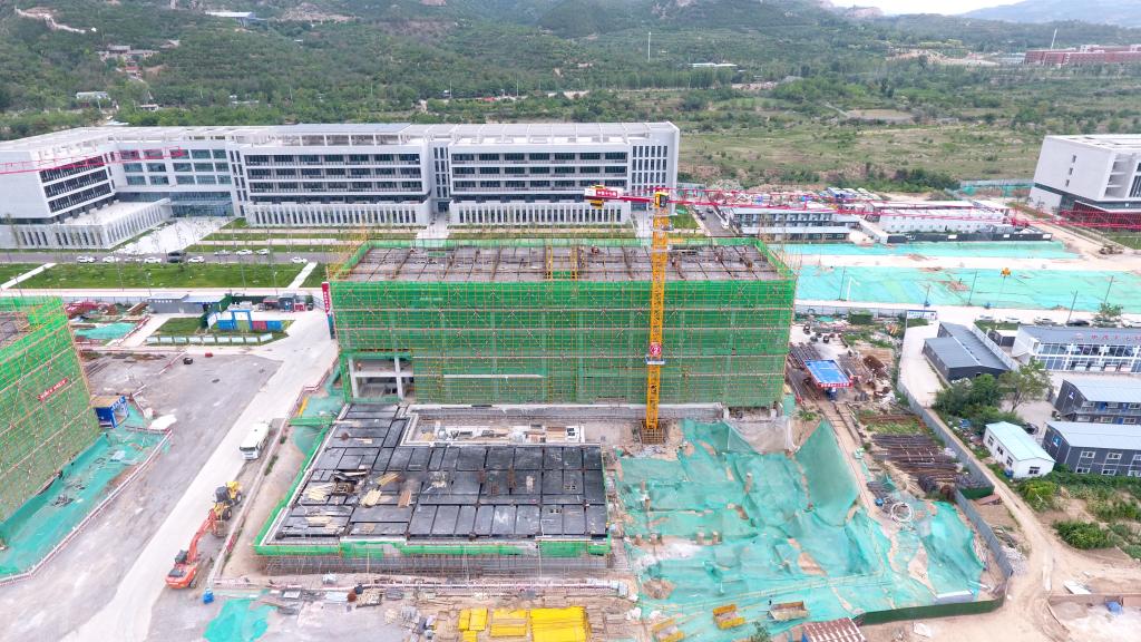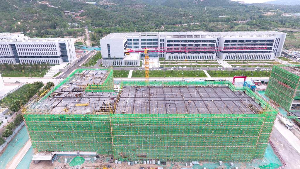 A-E/1-6轴(裙楼),地下一层墙、柱、梁、板混凝土浇筑完成。