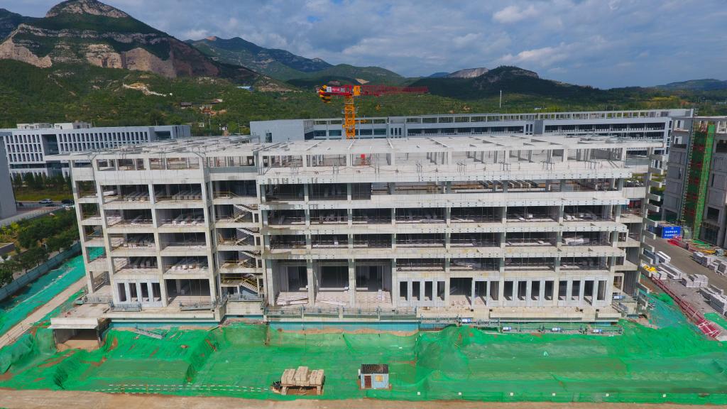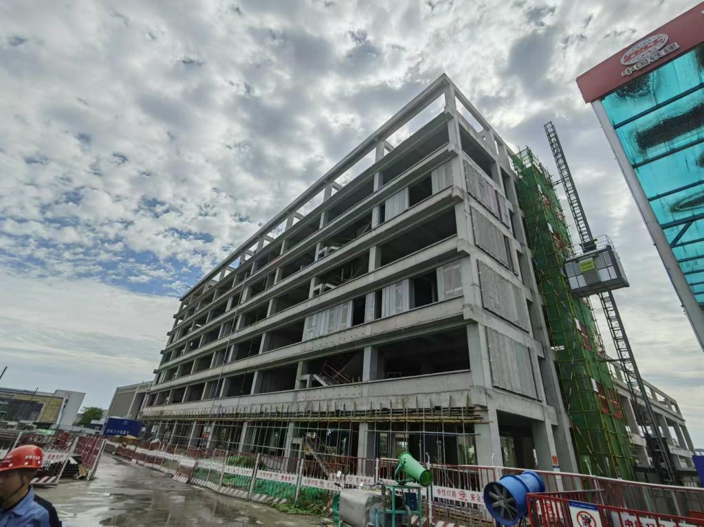 4)1-6轴(裙楼),屋面层柱、梁、混凝土浇筑完成。