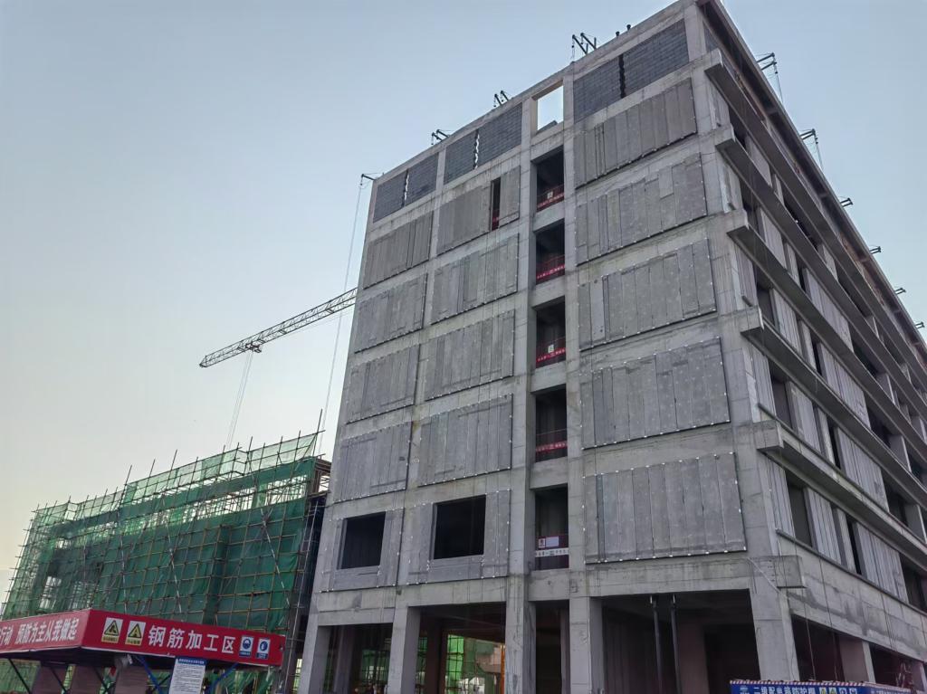 1)1-10轴(主楼):二层~五层ALC墙板安装完成,一层安装完成70%,六层安装完成80%。
