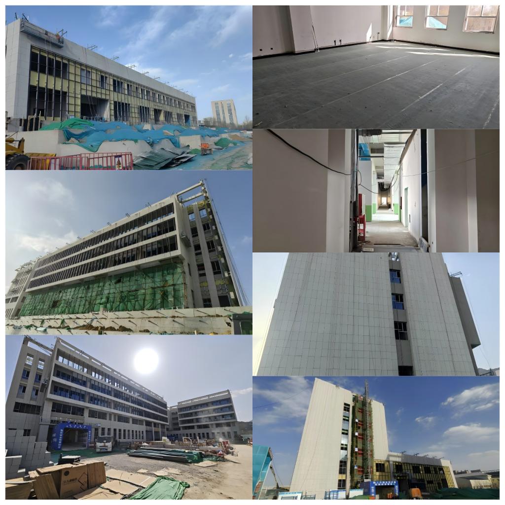2)外装:外墙仿石材岩板完成70%,玻璃幕墙龙骨全部完成。真石墙面找平完成60%,外窗玻璃安装完成80%。