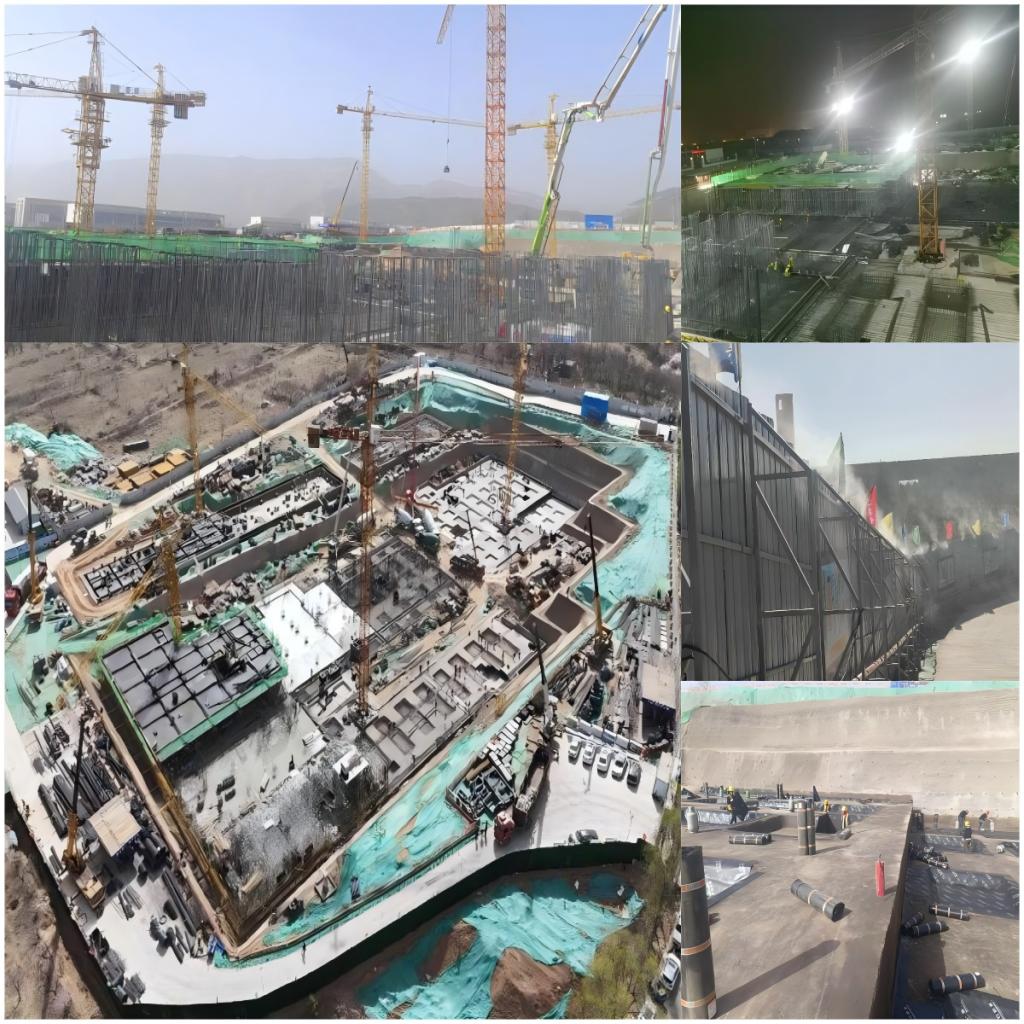 基坑临边支护采定型式网片+混凝土挡墙基础(采用原挡水墙),上部将喷淋固定,保证将喷淋湿法作业并抑制扬尘。