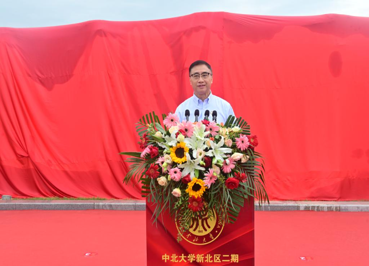 校长陈钱代表校党委校行政向新北区二期建设并投入使用表示祝贺,向奋斗在新北区二期建设与搬迁一线的全体师生员工致以敬意。他表示,新北区二期项目全部投入使用,是学校贯彻落实习近平总书记关于教育重要论述,立足新发展阶段,贯彻新发展理念,服务构建新发展格局的重大举措,是积极响应省委省政府支持我校率先发展的重大举措,是积极回应海内外全体中北校友的殷切期盼,是推动学校高质量发展、创建“双一流”大学的重大举措,这必将是载入我校办学历史的重要时刻。他表示,校门是学校重要的建筑和地理标识,更是学校精神和文化的象征,学校东大门的正式启用和校名石隆重揭幕,全面提升了学校整体形象,预示着全体中北人开创美好未来和奔赴远大前程的理想追求,东大门必将是平安之门、奋进之门、成功之门、凯旋之门,未来学校将继续以高质量发展的成效在创建“双一流”大学征程上阔步前行,以空间环境建设带动办学环境、育人环境,治理环境和情感环境的全方位引领提升,文明发展,击鼓催征,奋起扬帆,创造更加美好的明天。