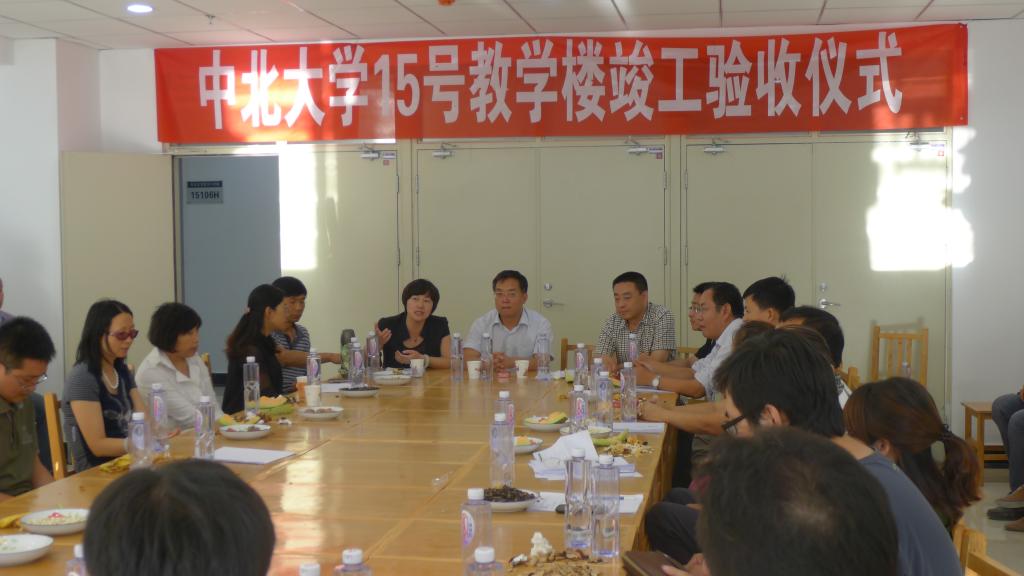 15号教学楼从去年6月开工建设,在校党委、校行政的热切关注下与各兄弟单位的大力支持下,经过一年多的严格管理、精心施工,顺利竣工并交付使用。9月6日下午四点,竣工验收仪式在15号教学楼东楼大厅正式举行,参加验收的有薛智副校长、太原市建设工程质监站领导、校建设监督小组领导、使用单位的负责人以及设计、施工、监理等参建单位的负责人。